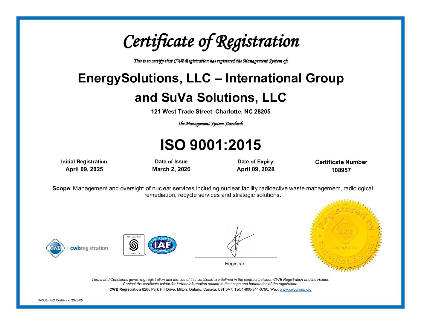 SUVA is a newly registered EnergySolutions recycling company, offering global recycling solutions for the nuclear industry.